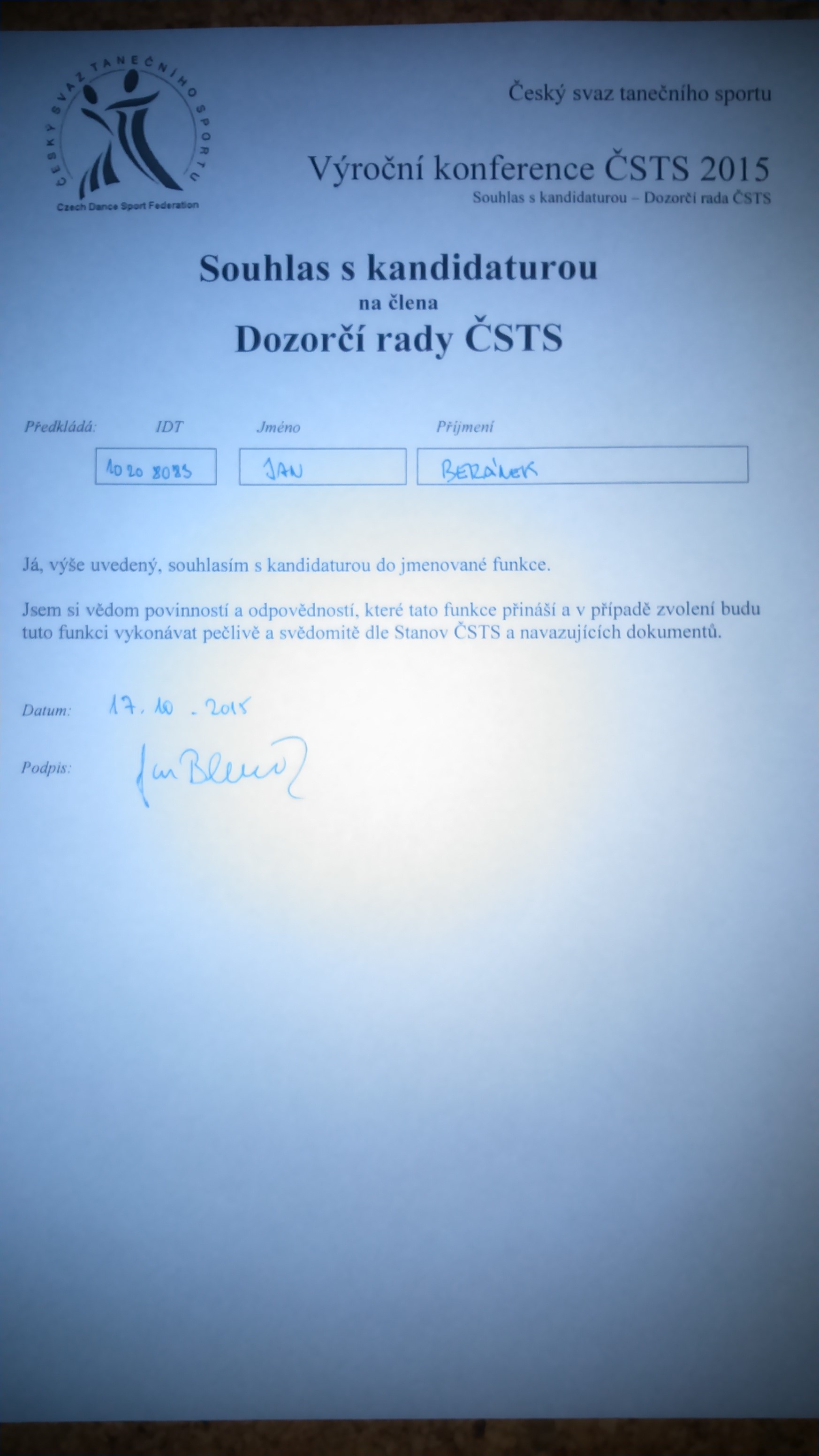 Kandidátka na Rozhodčí radu, Dozorčí radu ČSTS; Souhlas s kandidaturou: Rozhodčí rada -Jan Staněk+c.v.; Linda Henzélyová, Dozorčí rada-Jindřich Činčura, Jan Beránek