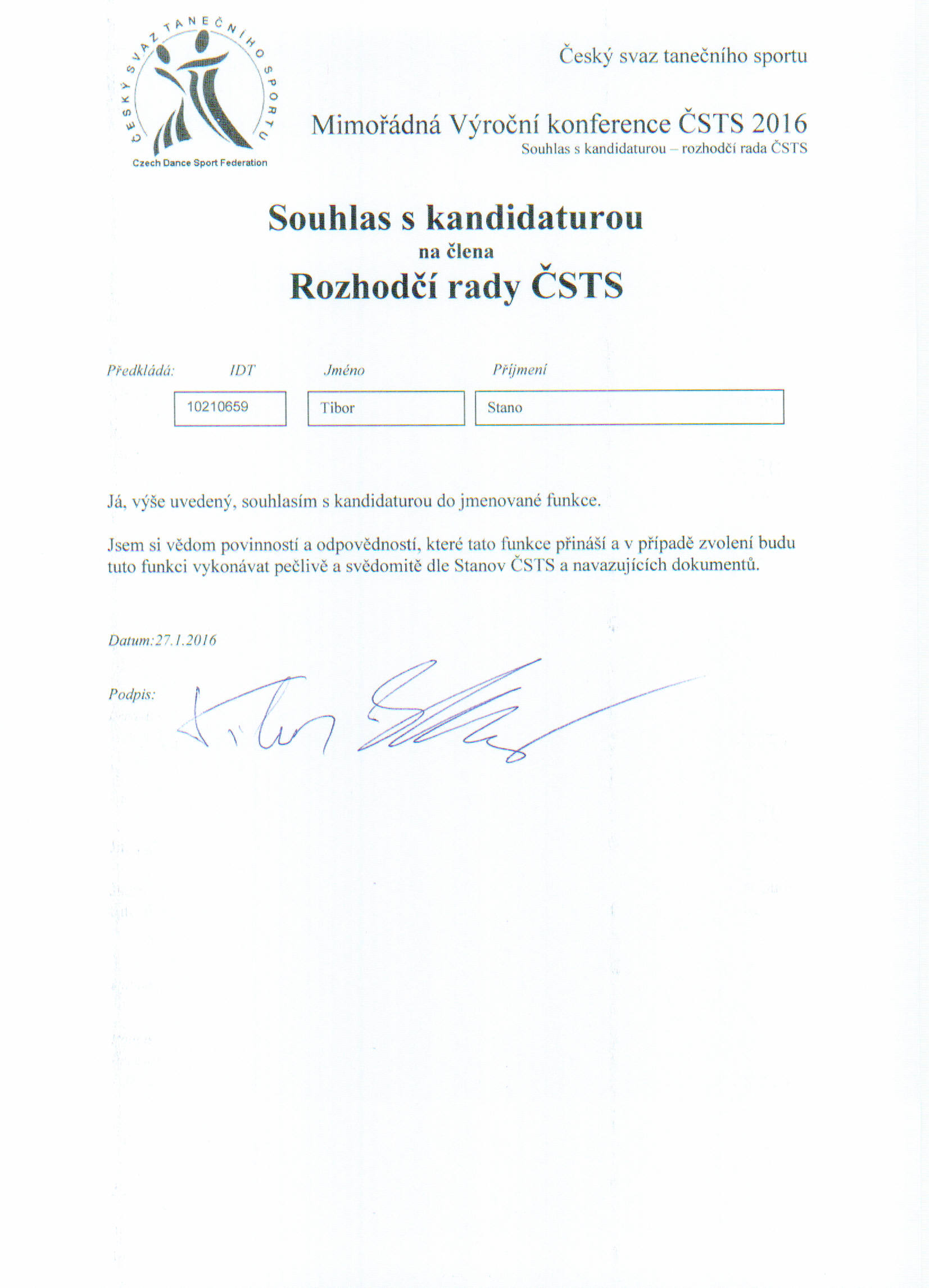 Souhlasy s kandidaturou: PR – Petr Odstrčil, DR- J.Činčura, D.Nováček, Z. Řeřábek, R. Vajchr st., J.Beránek; RR-L.Henzélyová, T.Stano, J.Ševčík, Mgr. Alice Kutišová