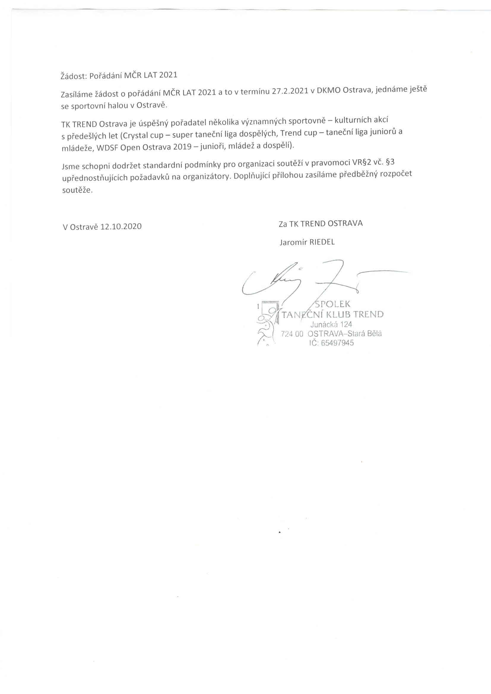 - Žádost TK Trend Ostrava