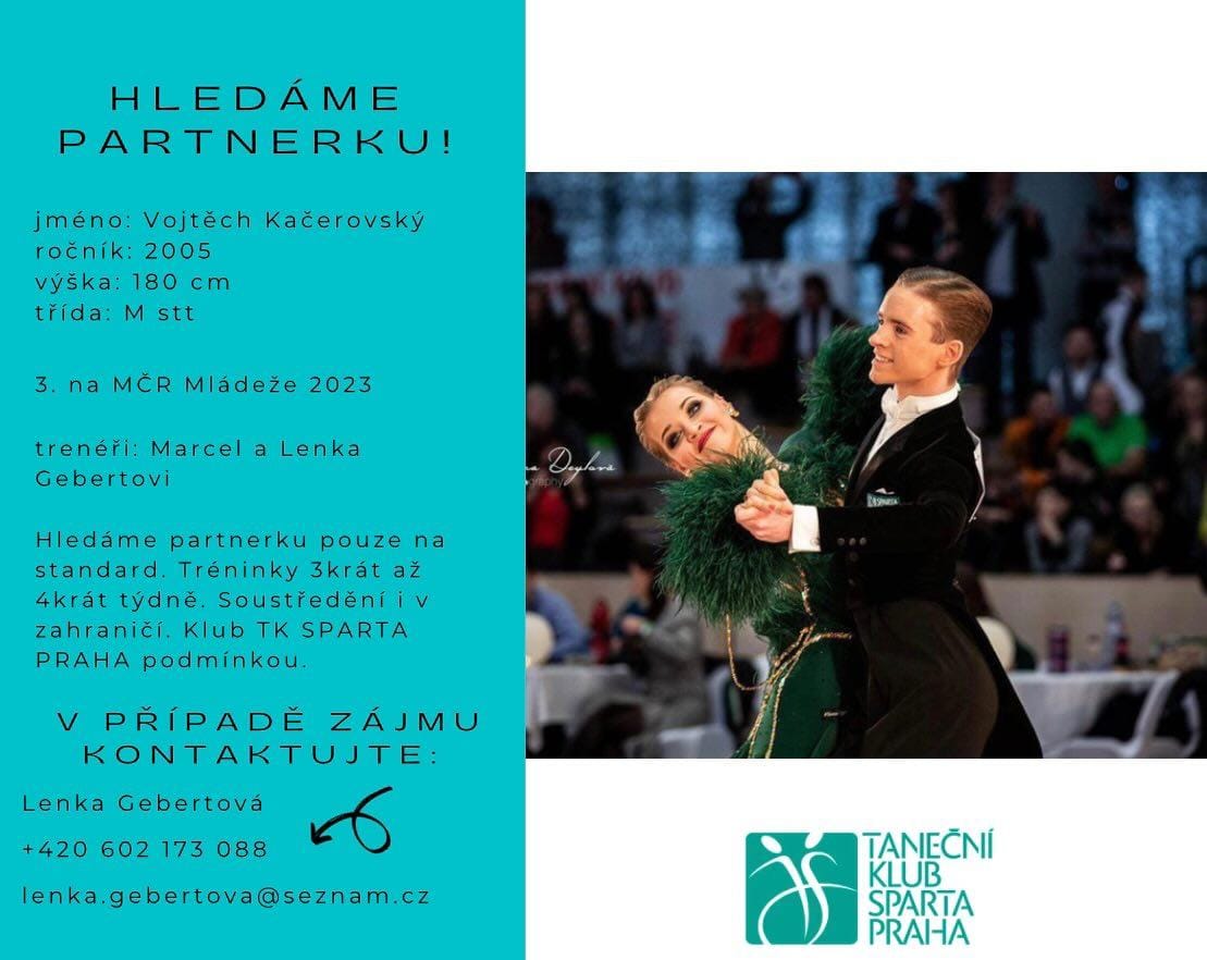 Hledám šikovnou taneční partnerku, která se chce tanci věnovat naplno tak, abychom společně vybudovali silný a ambiciózní pár, který má potenciál posouvat se rychle vzhůru napříč soutěžními třídami ve standardních i latinsko-amerických tancích. Nabízím seriózní a cílevědomý přístup, intenzivní tréninkový plán pod vedením špičkových trenérů v Praze, možnost soustředění (Praha, okolí i mimo Prahu) během roku i prázdnin a stoprocentní nasazení. Očekávám podobné zapálení a spolehlivost. | ||