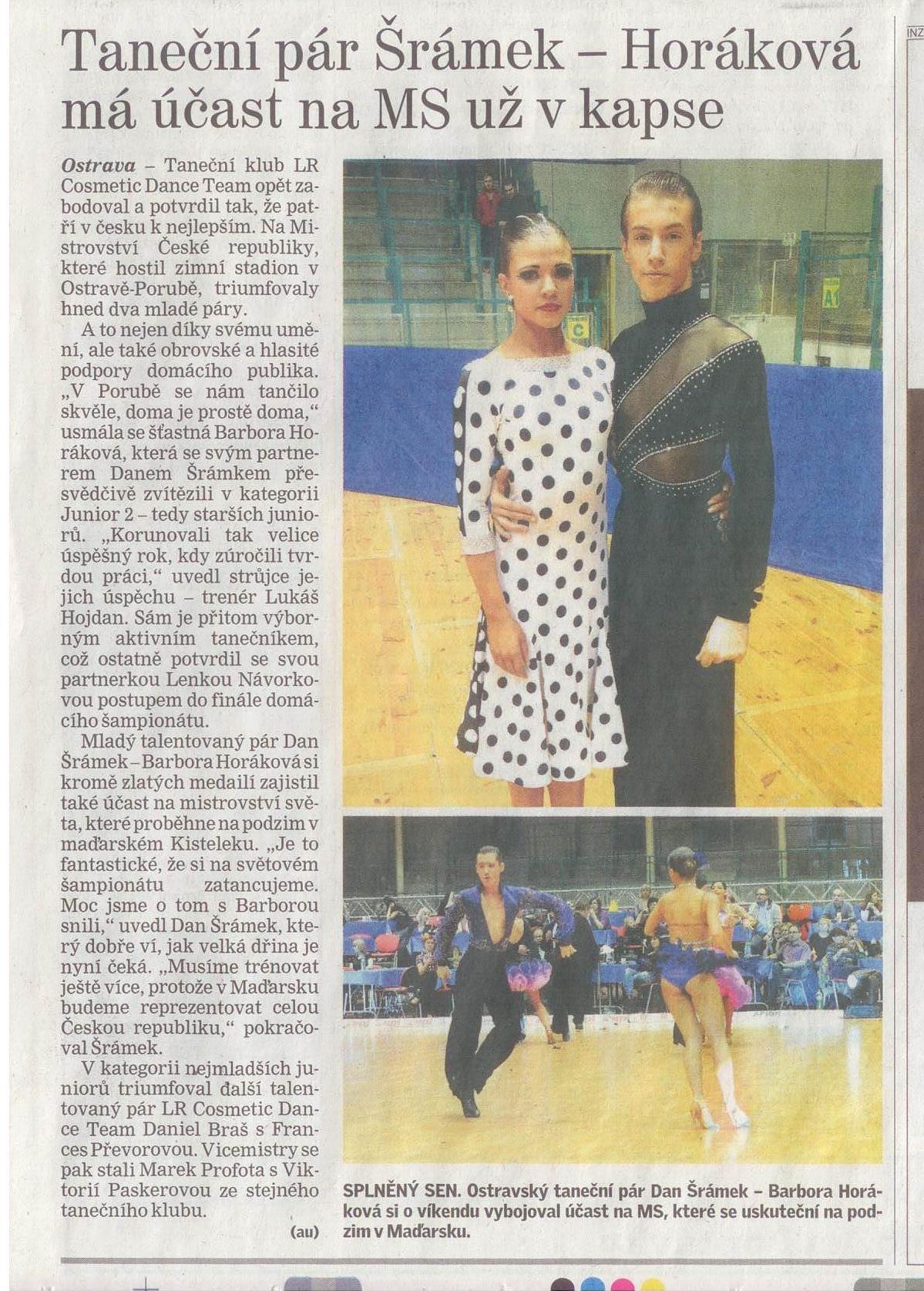 MF Dnes – kraj moravskoslezský 23.1.2012: Bravo! Aplaudovali diváci tanečníkům na mistrovství (MČR LAT 2012)