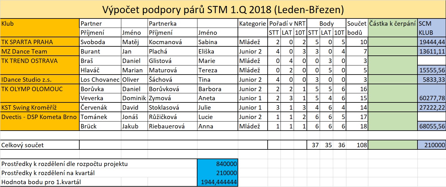 Podpora párů v rámci projektu STM pro 1. čtvrtletí 2019 je ZDE.