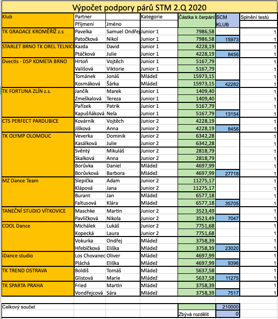 Červenou barvou jsou označené páry, které nesplnily testy a mají nárok na 50% podpory